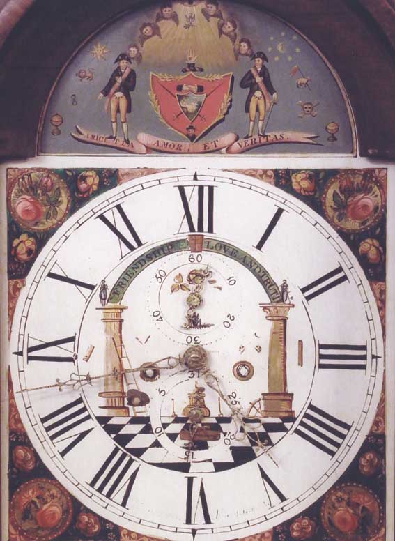 You will see from the photographs that the face is adorned with a mixture of Masonic and Oddfellows symbols. Strangely, the dial has two number VIIIs, though this may not be an original feature.